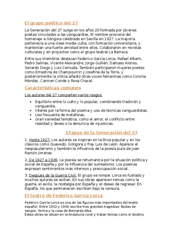 EL GRUPO POÉTICO DEL 27, CARACTERÍSTICAS, ETAPAS, TEATRO DE FEDERÍCO GARCÍA LORCA