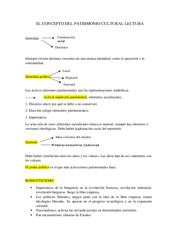 Esquemas de la lectura "El concepto del patrimonio cultural", tema 1.