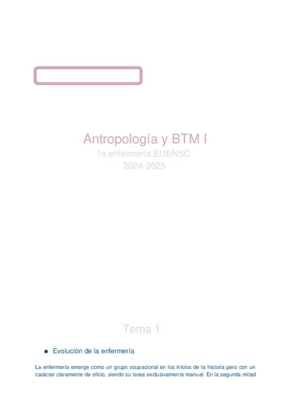 He publicado nuevos apuntes de 1º Antropología de los Cuidados y Bases Teóricas y Metodológicas de la Enfermería I: BTM