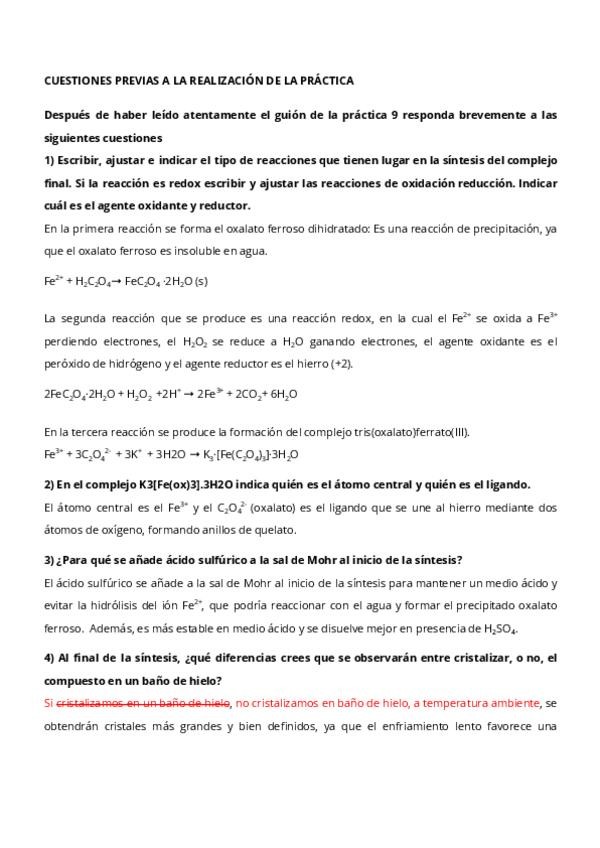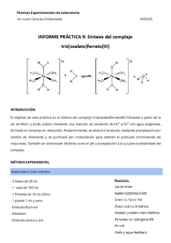 He publicado nuevos practicas de 1º Técnicas Experimentales de Laboratorio: Química Inorgánica- Práctica 9