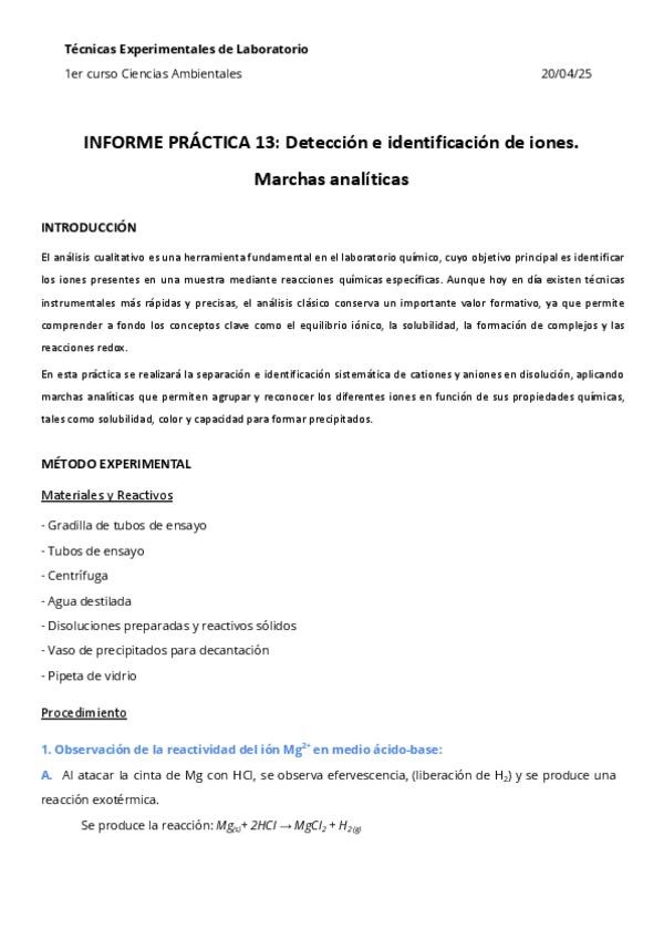 He publicado nuevos practicas de 1º Técnicas Experimentales de Laboratorio: Química Inorgánica- Práctica 13