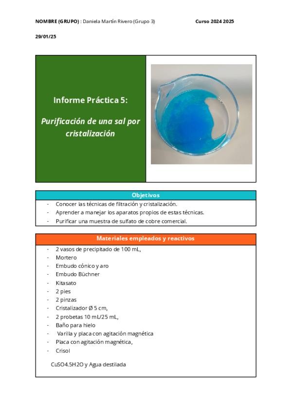 He publicado nuevos practicas de 1º Técnicas Experimentales de Laboratorio: Química Inorgánica- Práctica 5