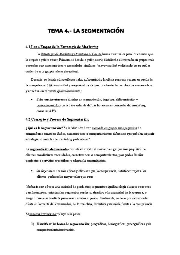 APUNTES del tema 4 (la segmentación) y tema 5 ( la diferenciación y posicionamiento)