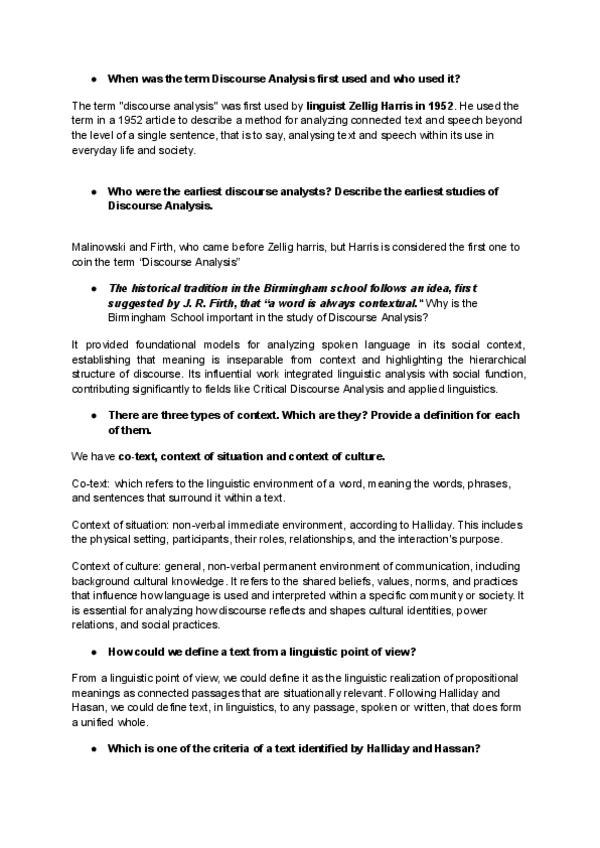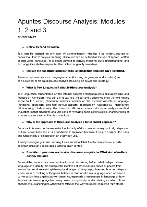 Apuntes sobre Discourse Analysis del Módulo 1, 2 y 3, que son sacados de las self-evaluation questions que ha dado.