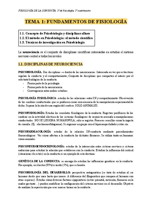 Apuntes de todos los temas de Fisiología de la conducta. Plan nuevo 2023/24.