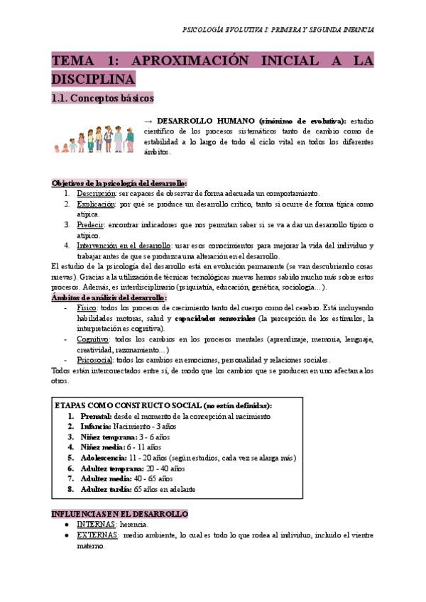 Apuntes completos (del tema 1 al 7) de Psicología Evolutiva I. Plan nuevo 2023/24