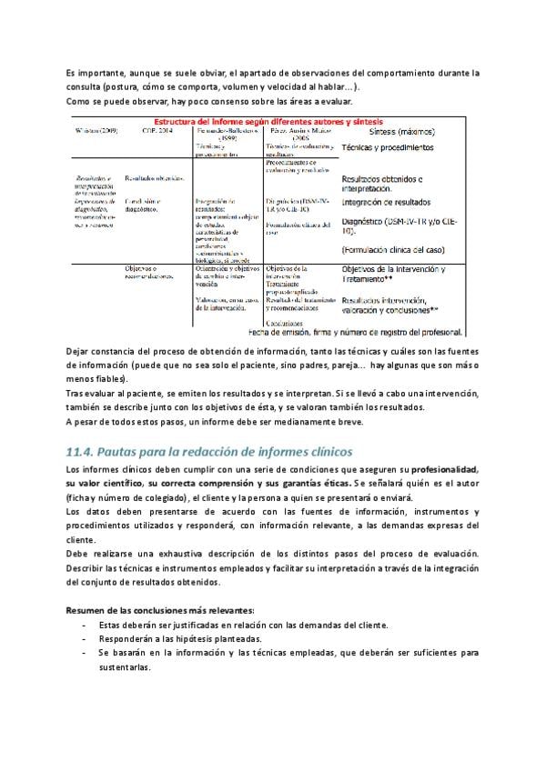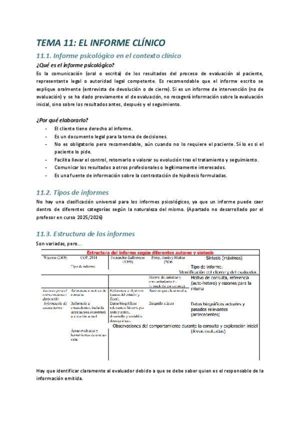 Apuntes del tema 11 de Evaluación Psicológica: El informe clínico. Curso 2025/2026 (plan nuevo).