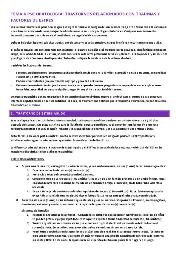 He publicado nuevos apuntes de 4º Psicopatología: PSP T.6 (3º): Trastornos por traumas y estrés.pdf