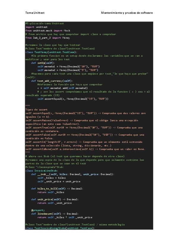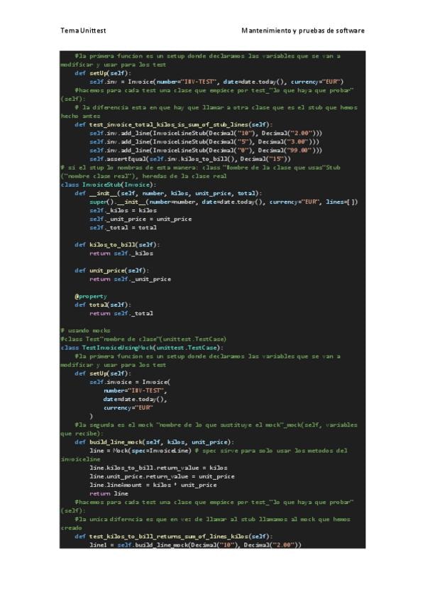 Explicación del codigo sobre unittest, unit testing, mocks, spys y stub