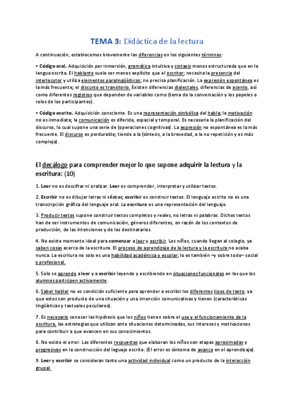 Apuntes del temario de Didáctica de la Lengua Enero 2024
