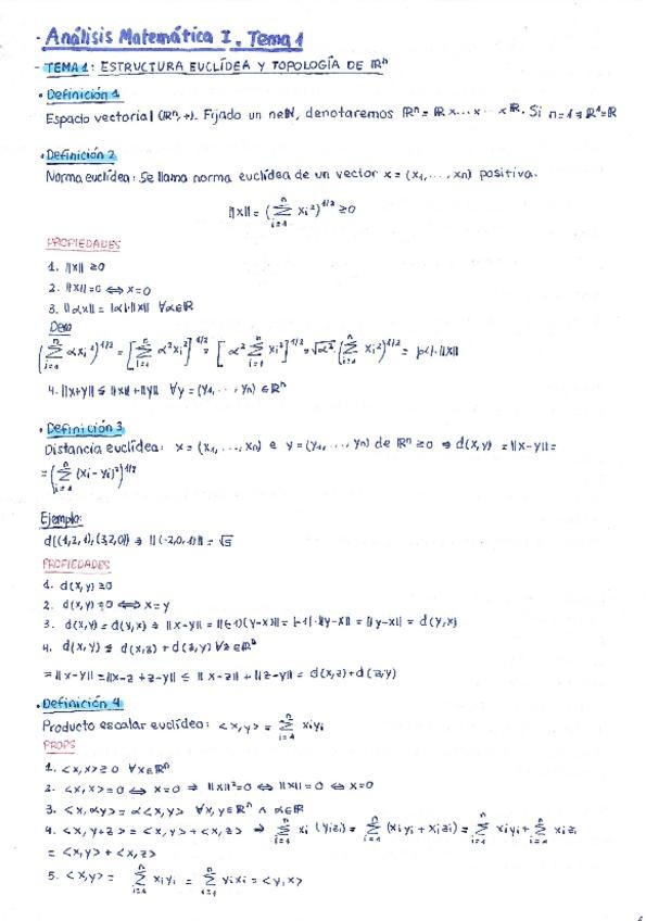 Apuntes completos del Tema 1 - Estructura Euclídea y Topología - Análisis Matemático I (25/26). Incluye teoría y ejercicios resueltos. Grado en Ingeniería Física y Matemática (ULPGC). ‼️También Disponible Temas 2, 3, 4 en mi perfil ‼️