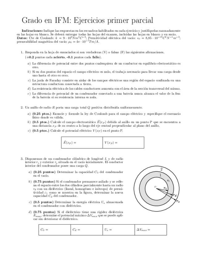 Examen Primer Parcial de Física II 24/25. Con Solución. Grado en Ingeniería Física y Matemática (ULPGC).