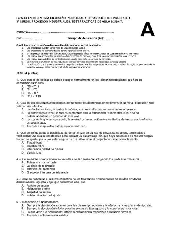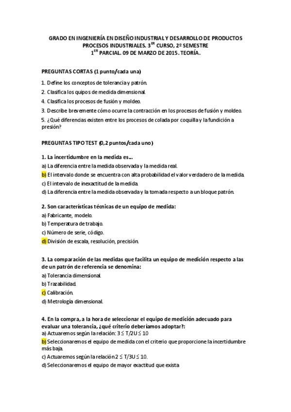Examen primer parcial fusion y moldeo y metrologia del 2017