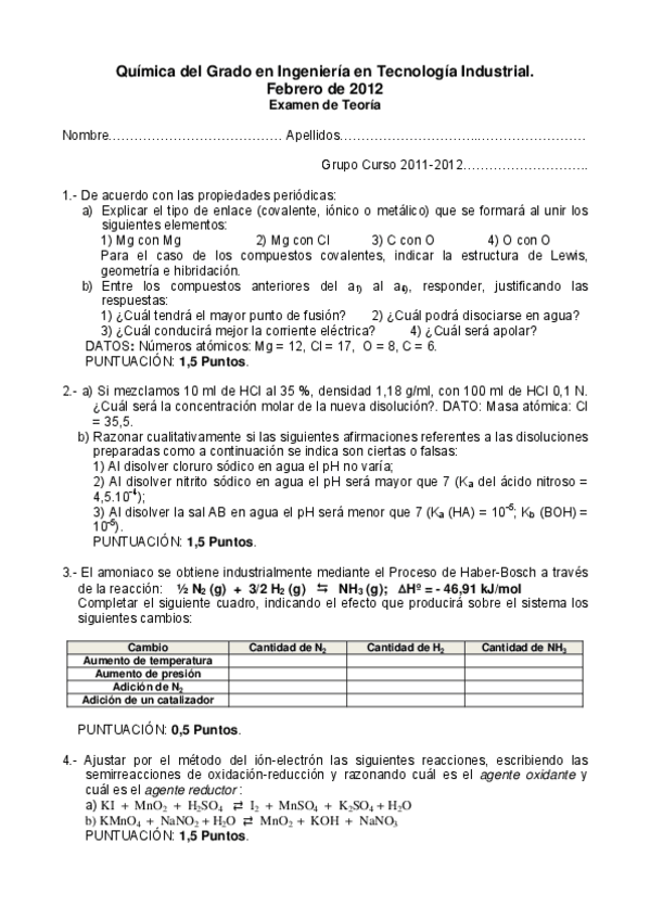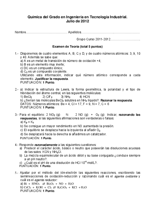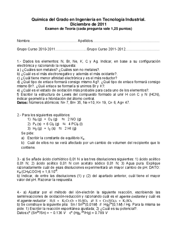 Exámenes Química