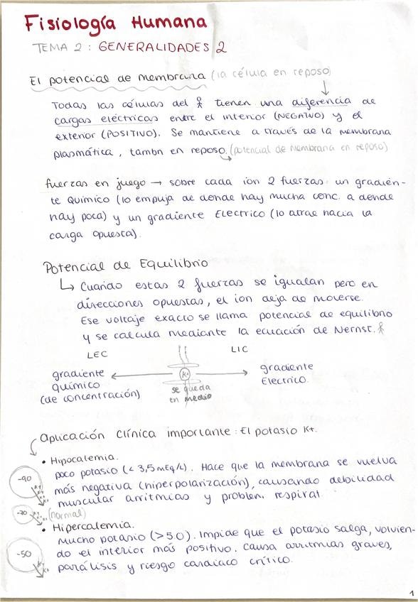 Estos apuntes abarcan todo el contenido del Tema 1 de Fisiología Humana: Generalidades II, centrándose en Potencial de Membrana y Sinapsis. El grado de explicación es muy amplio. Son extensos, a la vez que están muy claramente redactados y separados por b