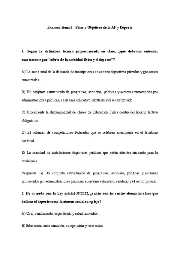 Este examen se ciñe al Tema 6 de Pedagogía de la AF y Deporte, elaborado en las condiciones reales en que este se realizaría. Las cuestiones tratan el tema con gran amplitud, siendo su nivel exigente.