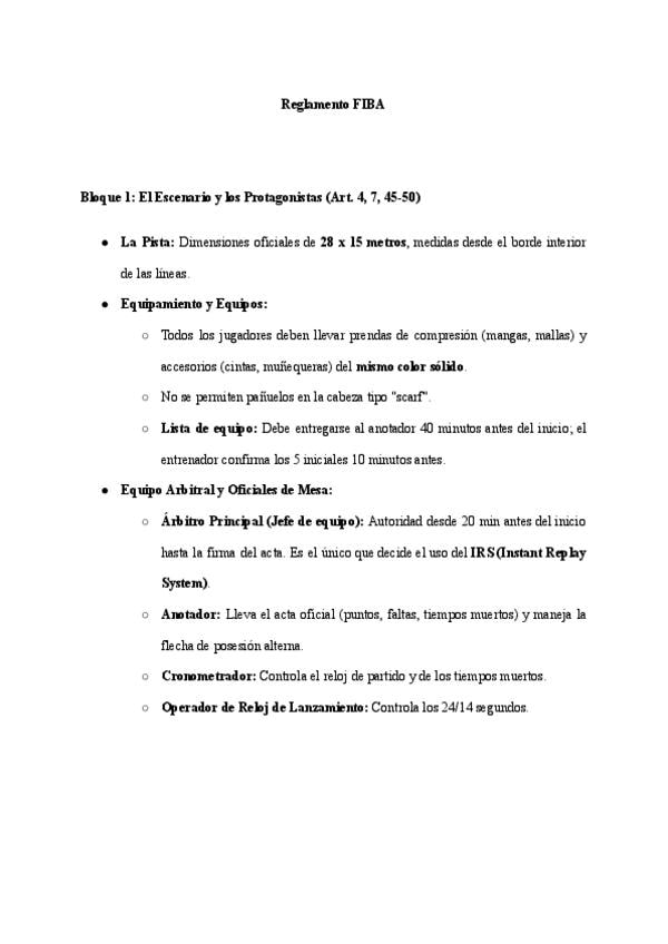 En este documento, correspondiente al Tema 3 de la parte de Baloncesto, se detallan todas las reglas del Baloncesto según la FIBA, el cual es el órgano oficial en el cual se basan las universidades para evaluar este deporte. Se recogen absolutamente todo