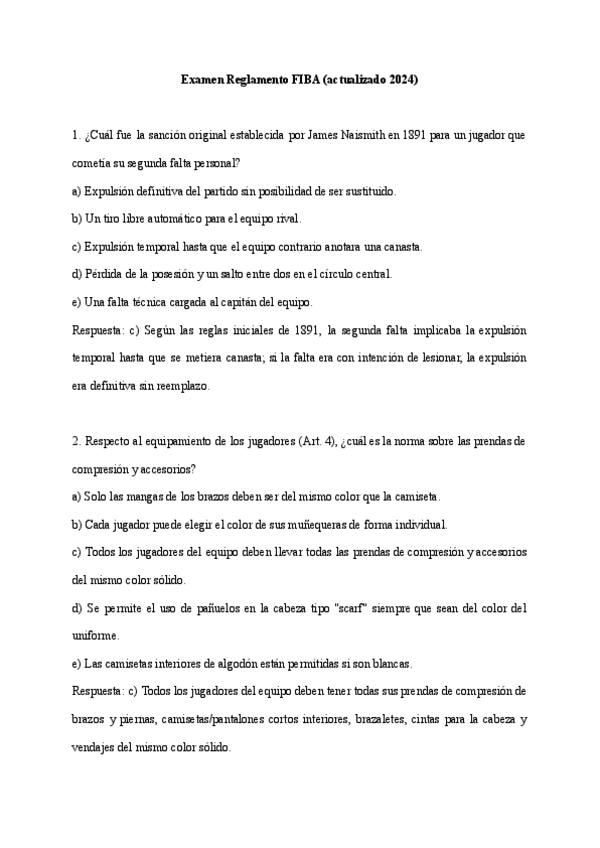 Este examen de práctica se centra en el Tema 3 de la parte de Baloncesto: el Reglamento FIBA. Son 60 preguntas totales, realizadas en las mismas condiciones en que se hará el examen oficial. En este caso, engloba este tema únicamente, pues, en el examen r