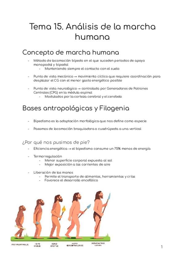 Concepto de marcha, bases antropológicas, adaptaciones del esqueleto bípedo, cinética eficiente, ciclo de la marcha, periodo de oscilación, parámetros espacio-temporales, dinámica muscular, cinética de la marcha, Activación neuromuscular, biomecánica de l