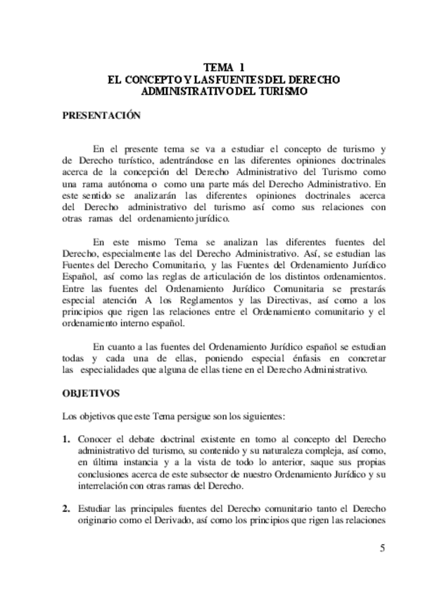 resumen de tema 1 , EL CONCEPTO Y LAS FUENTES DEL DERECHO ADMINISTRATIVO DEL TURISMO