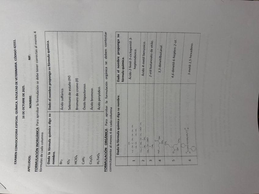 Examen convocatoria especial química 2025