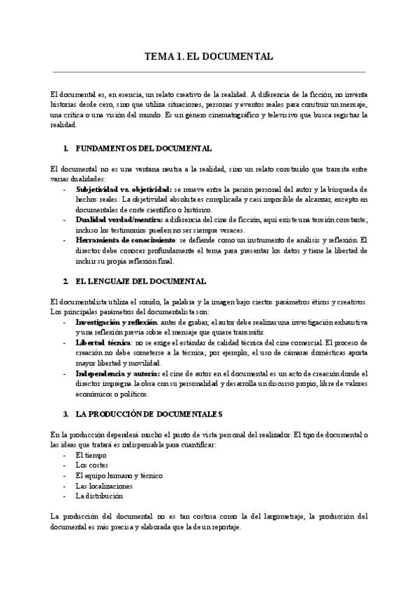 En el pdf está todo el temario de documental y violencia