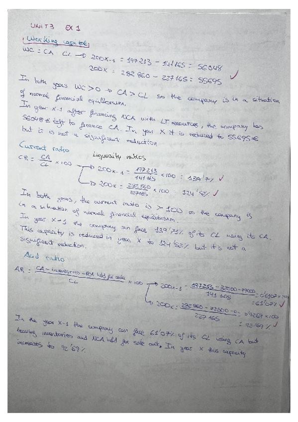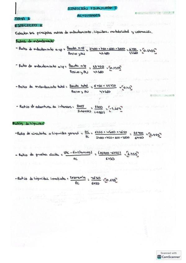 Ejercicio resuelto con los ratios de liquidity, solvency y profitability