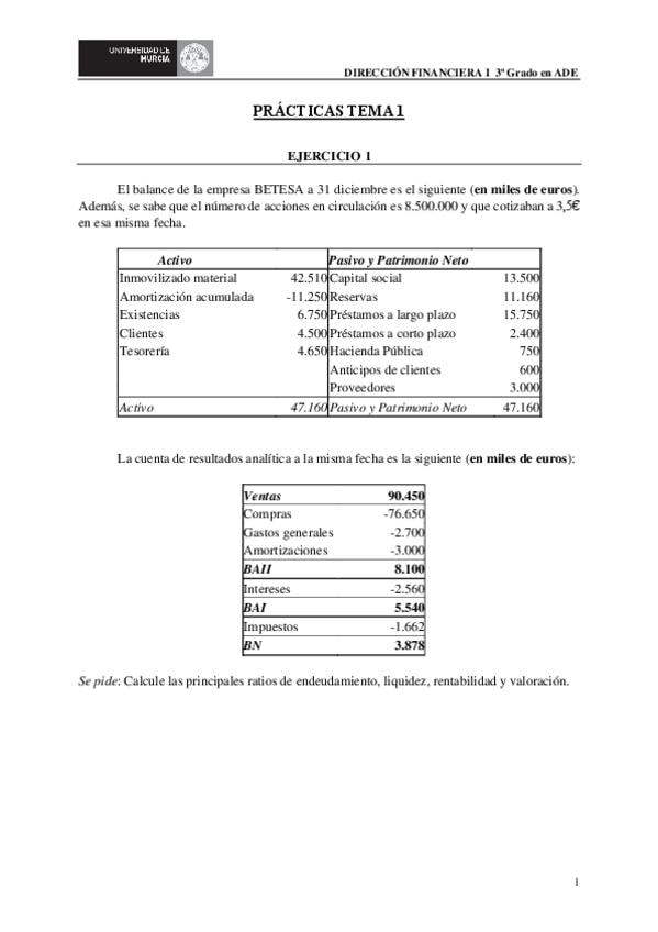 He publicado nuevos practicas de 3º Dirección Financiera I: Prácticas DFI