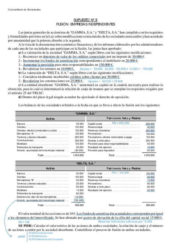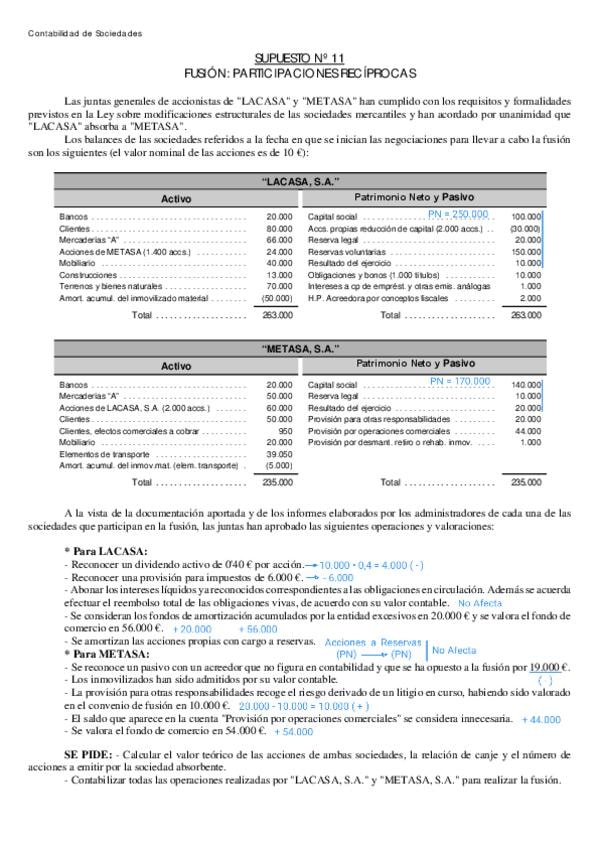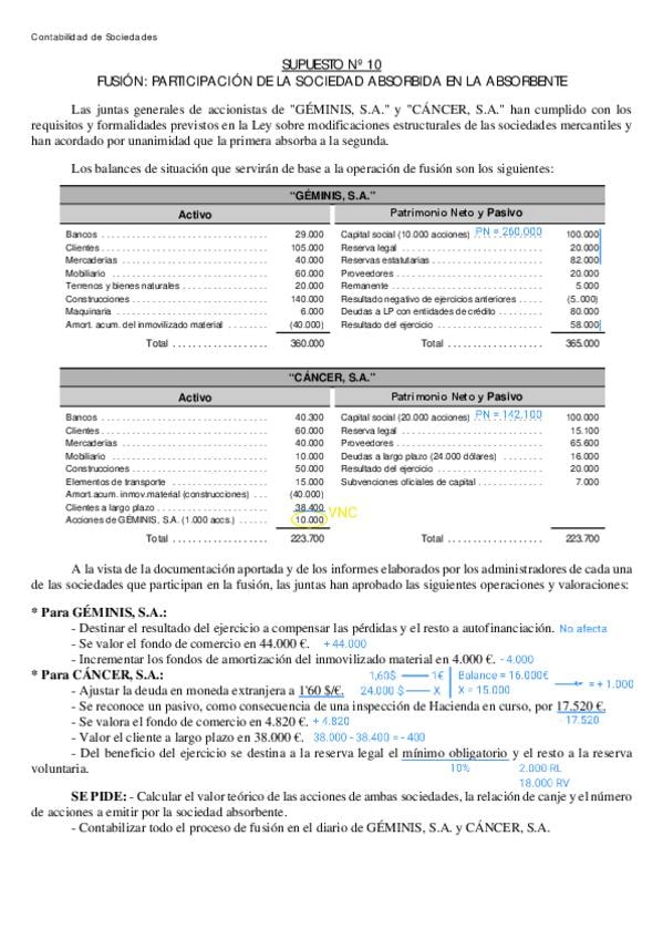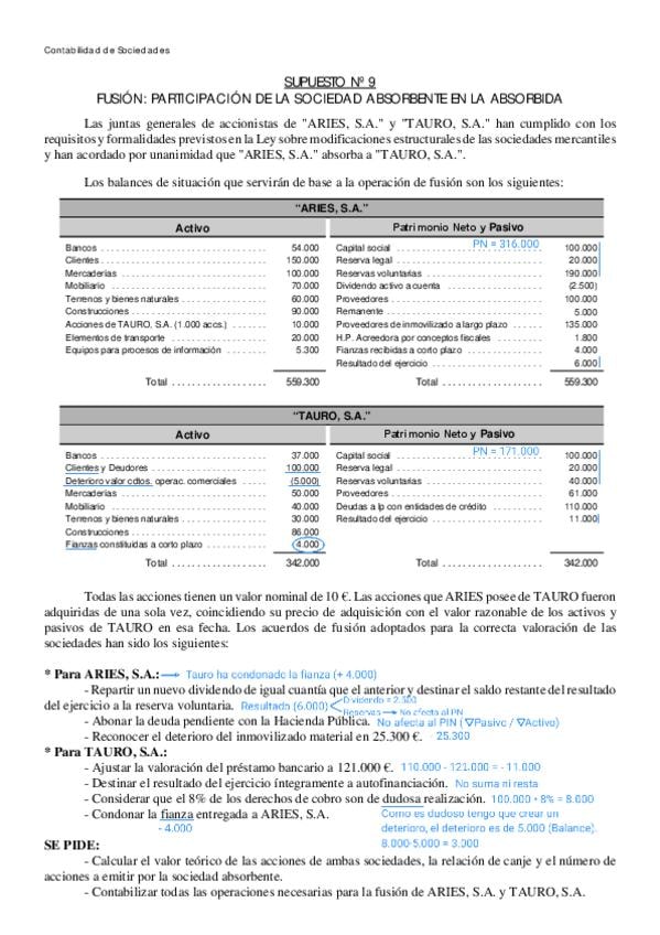 He publicado nuevos ejercicios de 2º Contabilidad de Sociedades: Supuestos de Fusión