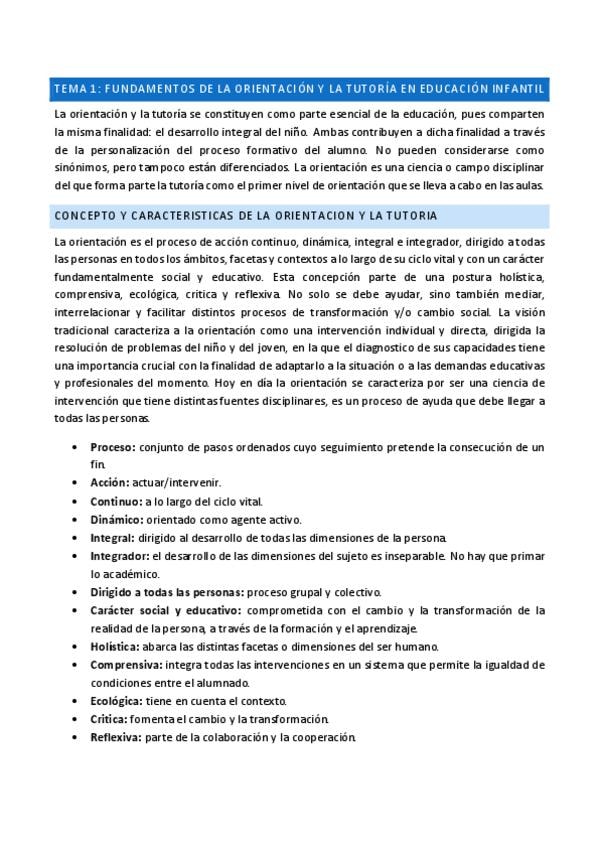 Apuntes del tema 1 de la asignatura Orientacion, Accion Tutorial en Educación Infantil