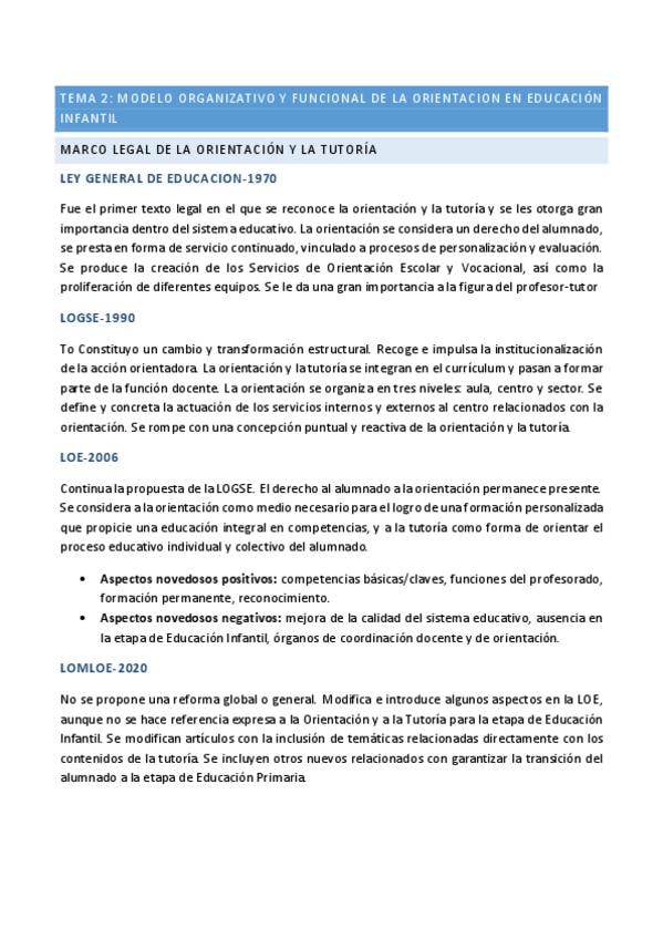 Apuntes del tema 2 de Orientacion, Accion Tutorial en Educacion Infantil