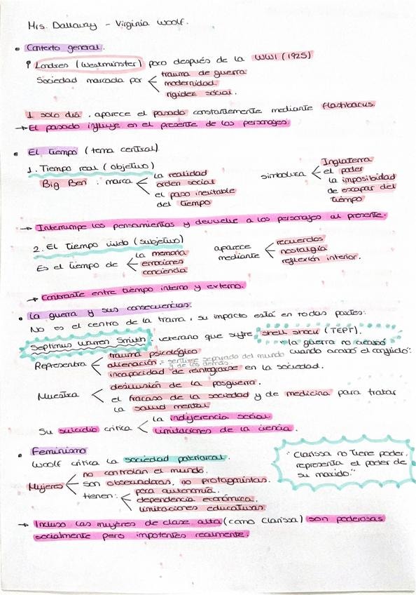 Apuntes en español de la práctica de Mrs Dalloway: todo lo que hay que saber para entender el libro en profundidad