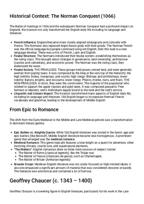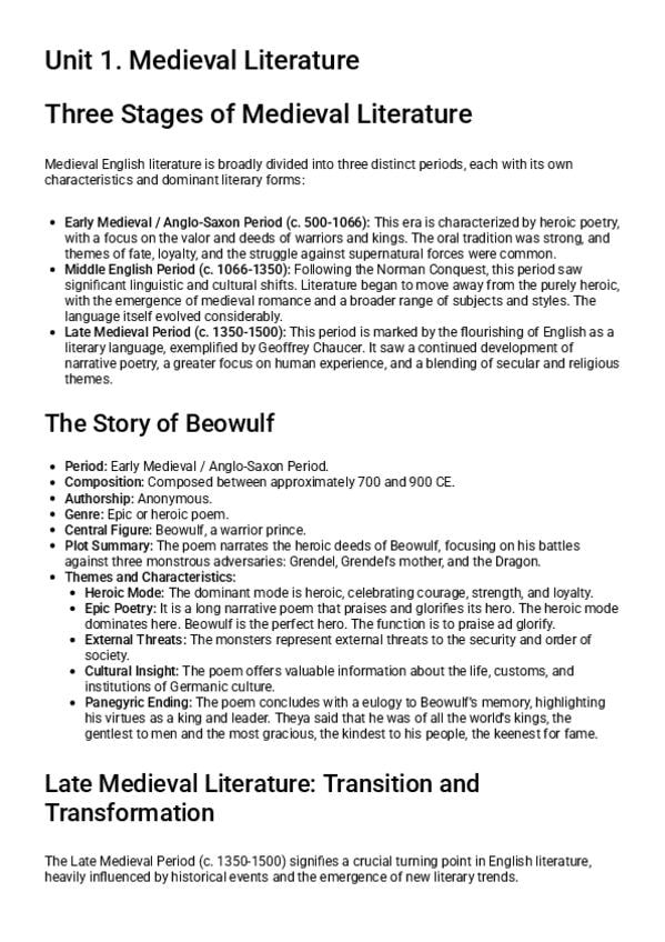 Apuntes del T1 Medieval Literature. Introducción literatura Inglesa
