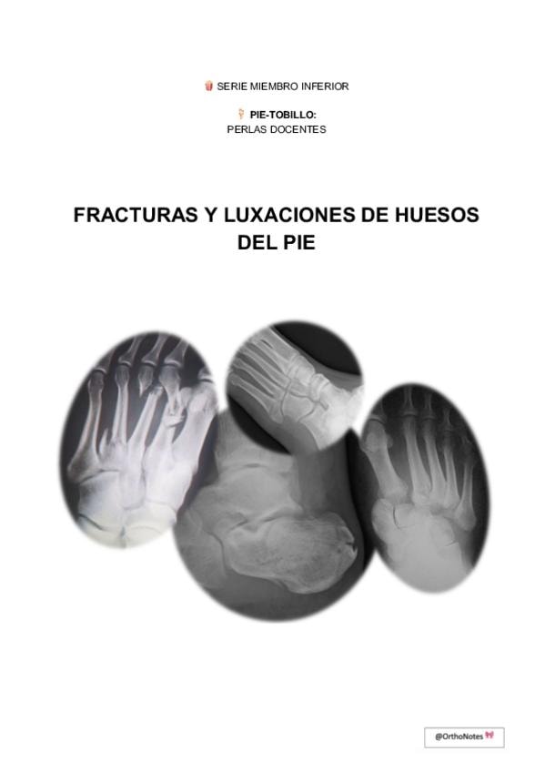 incluye un resumen de las fracturas y luxaciones más frecuentes que afectan al pie. Con dibujos, clasificaciones y lo más importante que debes saber