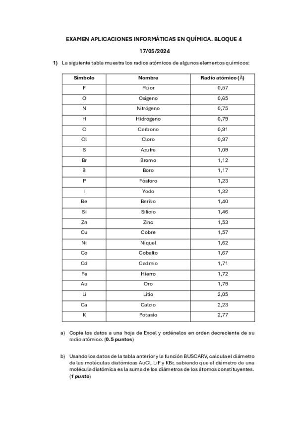 He publicado nuevos examenes de 1º Aplicaciones Informáticas para la Química: examenexcel2.pdf