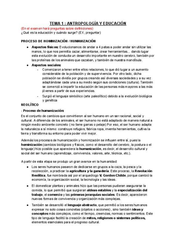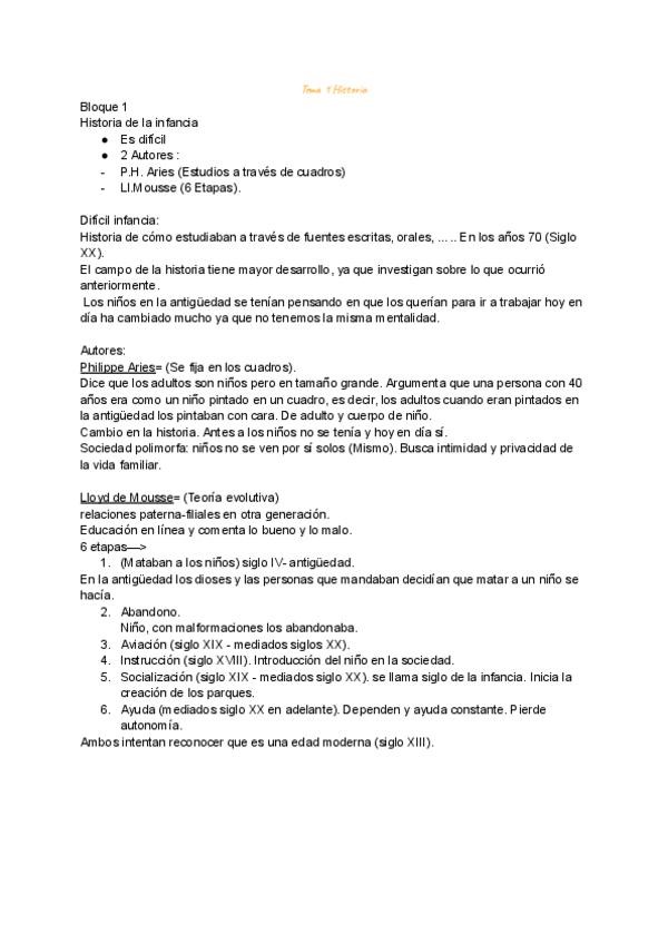 Resumen completo TEMA 1 El concepto de la infancia a lo largo de la historia