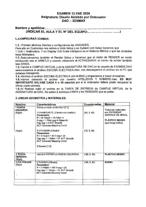 Examen final realizado en enero de 2026 de la asignatura de Diseño Asistido por Ordenador