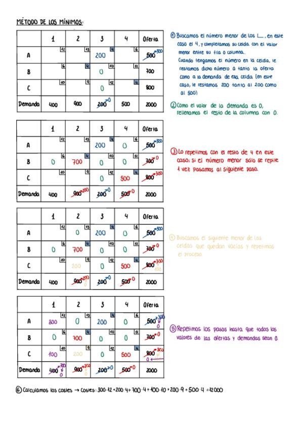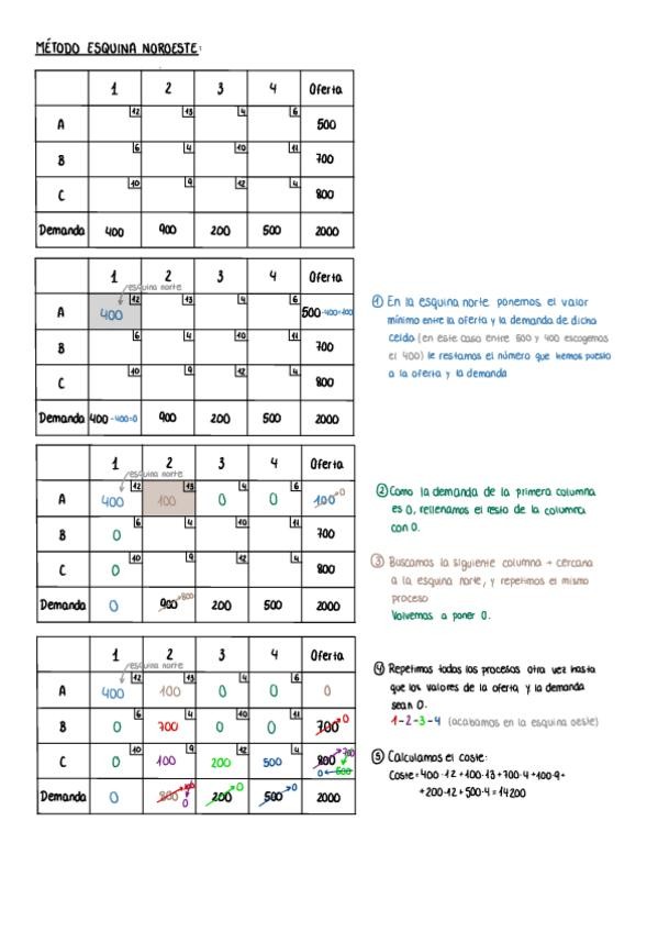 Método del esquina noroeste. Método de los mínimos. Método de Vogel. Método Stepping stone – pasos secuenciales.