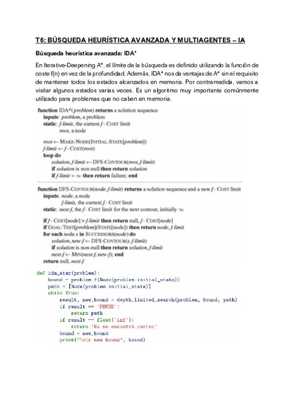 Apuntes del T6: Búsqueda Heurística Avanzada y Multiagentes de Fundamentos de Inteligencia Artificial.