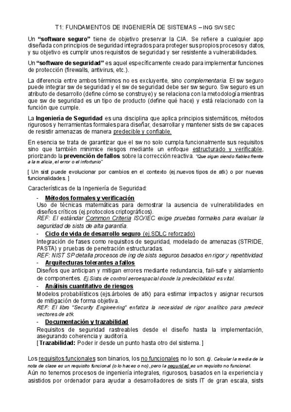 Apuntes del Tema 1: Fundamentos de Ingeniería de Sistemas de Ingeniería del Software Seguro.