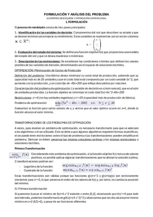 Apuntes del tema de Formulación y Análisis del Problema de Algoritmos de Búsqueda y Optimización Computacional completos y con ejemplos.