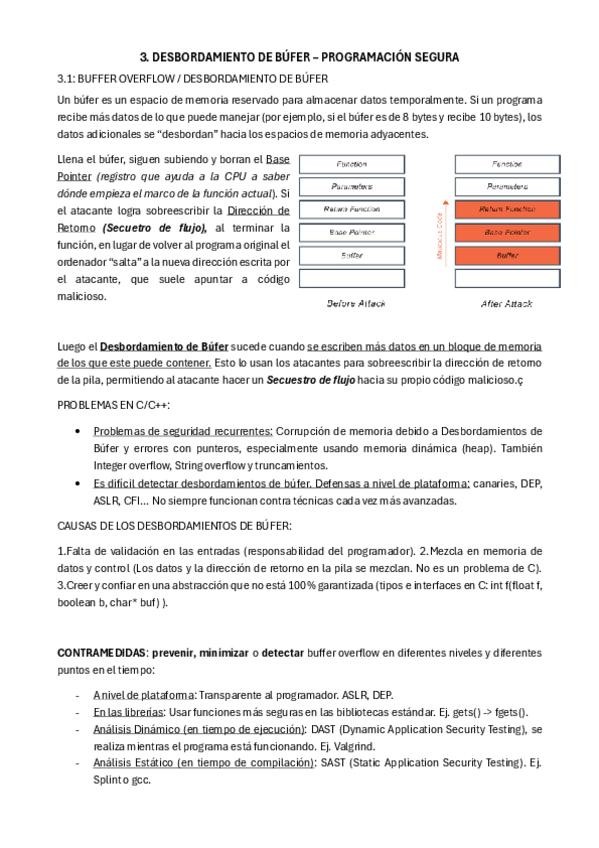 Apuntes del bloque de Desbordamiento de Búfer (Buffer Overflow) de Programación Segura