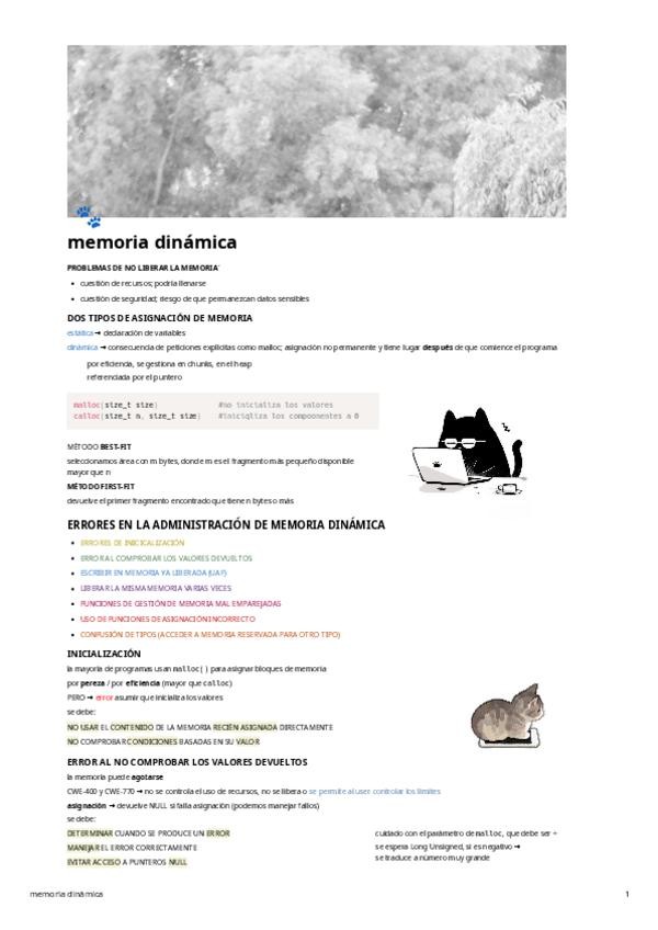 Apuntes del bloque de Memoria Dinámica de Programación Segura.