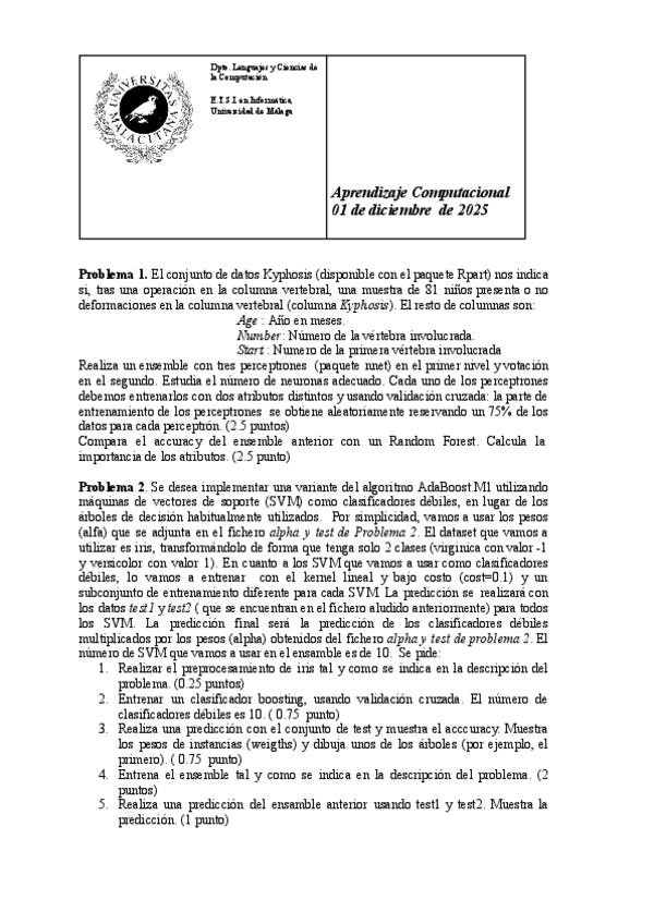 He publicado nuevos examenes de 4º Aprendizaje Computacional: Parciales 25-26