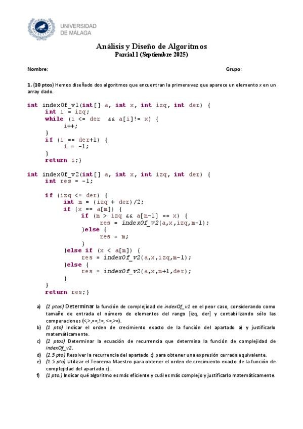 He publicado nuevos examenes de 2º Análisis y diseño de algoritmos: Parcial-1-Resuelto-2025.pdf