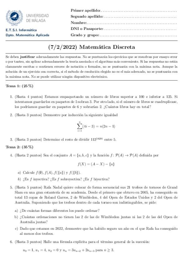 He publicado nuevos examenes de 1º Matemática Discreta: Examen-Final-Febrero-20212022.pdf
