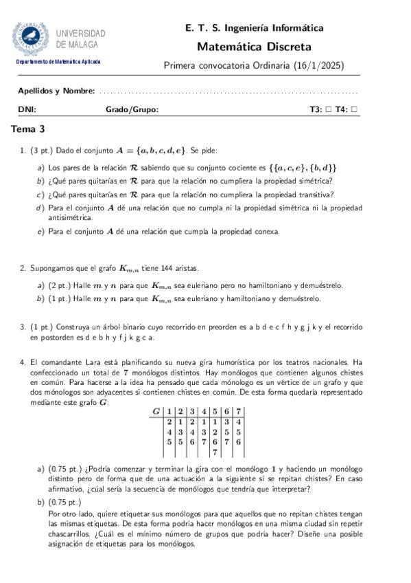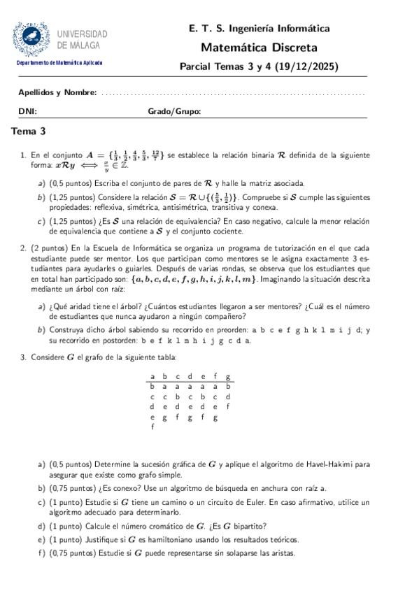 He publicado nuevos examenes de 1º Matemática Discreta: Examen-Parcial-Tema-3-Y-4-20252026-Informatica.pdf