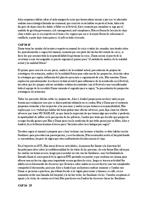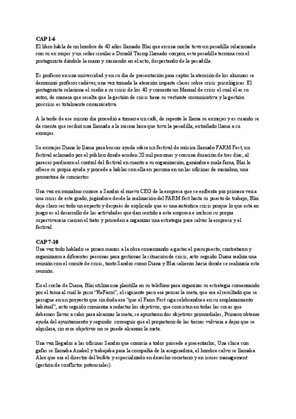 Resumen del libro "the show must go on" dividido por capítulos, cada párrafo es un capitulo