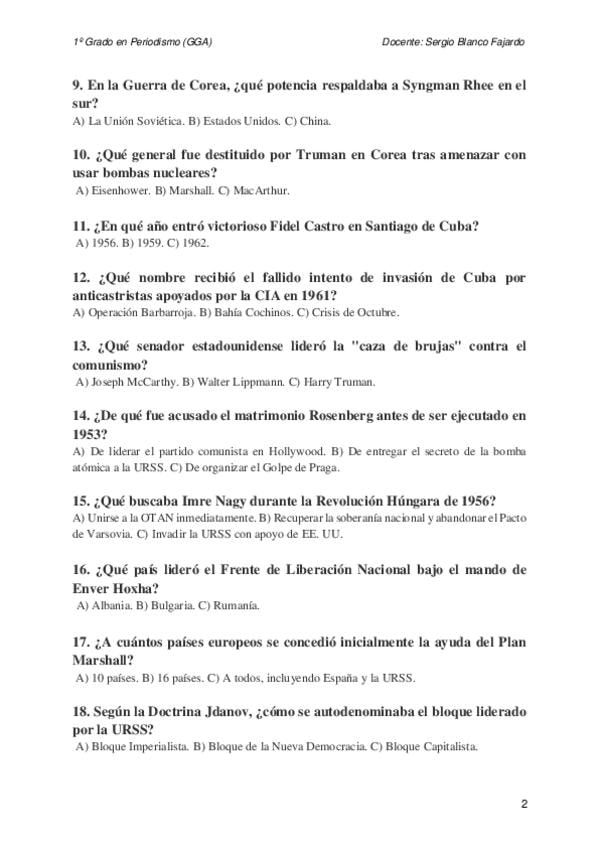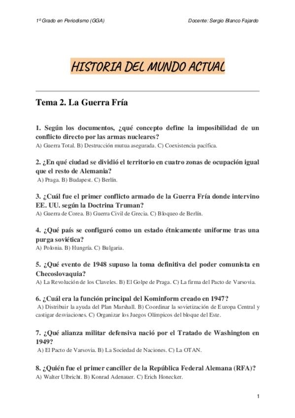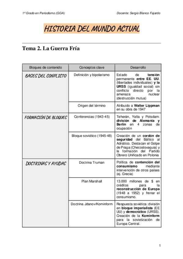 Contenido de desarrollo del tema 2: la guerra fría de la asignatura Historia del mundo actual.
