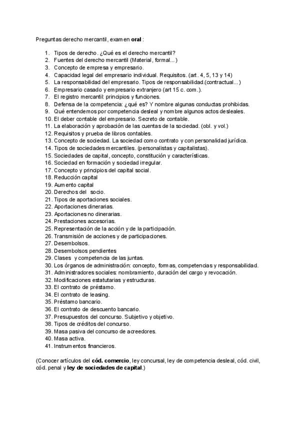 Guía de preguntas que han caído en el examen oral de derecho mercantil.